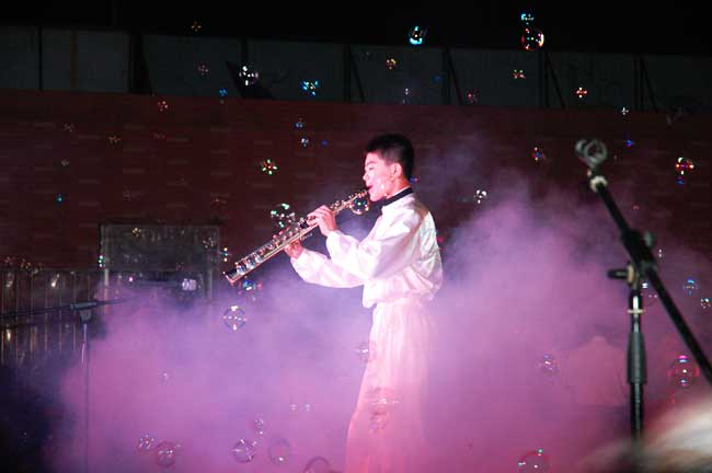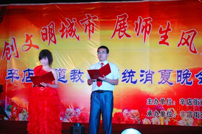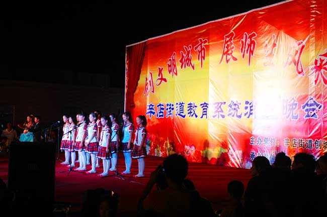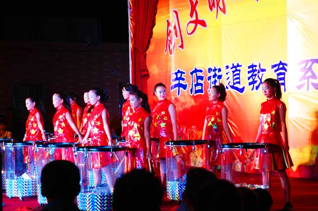 本次晚會(huì)規(guī)格較高,搭建了專(zhuān)業(yè)的演出舞臺(tái),設(shè)置了專(zhuān)業(yè)的音響、燈光系統(tǒng)。今晚是演出的首場(chǎng),節(jié)目?jī)?nèi)容豐富多彩,有大型舞蹈、樂(lè)器表演、相聲、歌伴舞,尤其是由辛店街道中學(xué)水鼓隊(duì)表演的大型水鼓,氣勢(shì)龐大、精彩紛呈、把整臺(tái)晚會(huì)推上了最高潮。本次系列晚會(huì)共分三個(gè)晚上,每晚的節(jié)目都將非常精彩,從而全面展示了實(shí)施素質(zhì)教育以來(lái)取得了豐盛成果。