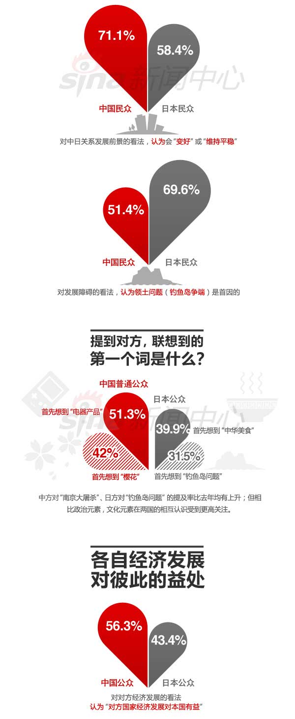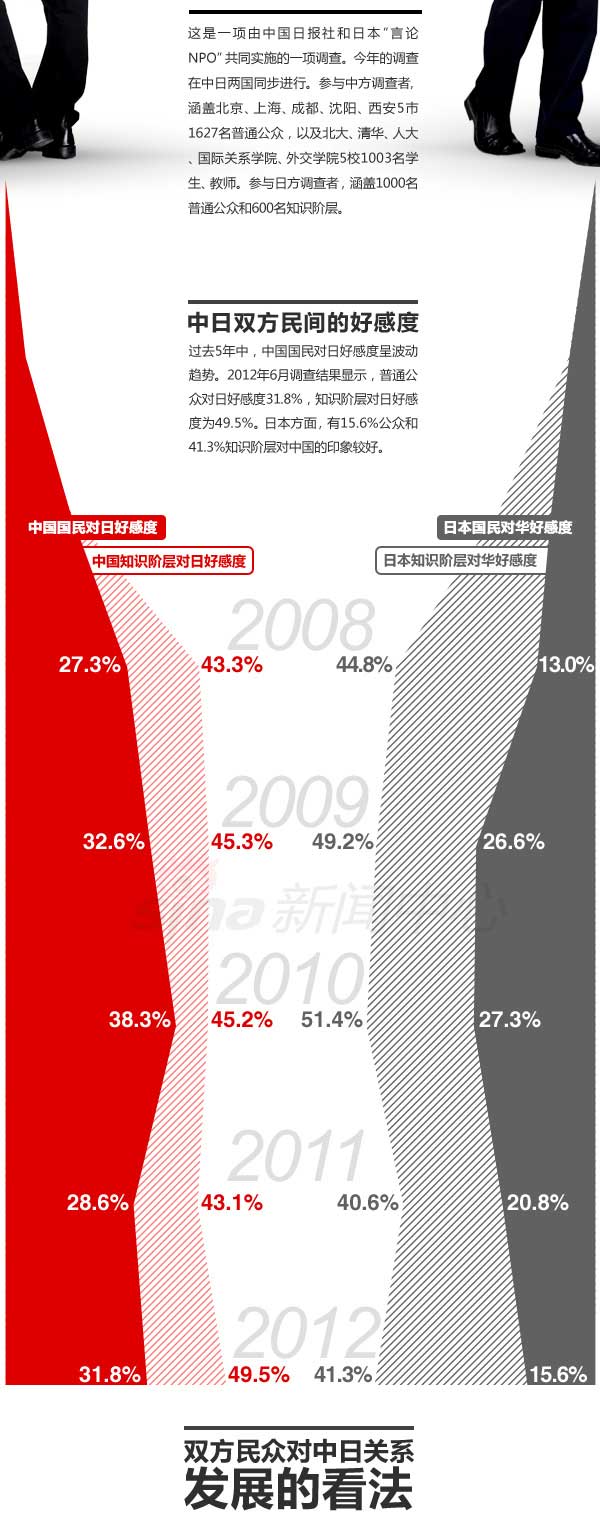 一份連續(xù)八年的調查報告,始終著眼于中日兩國民間的看法,記錄了普通民眾對雙方關系發(fā)展的判斷、以及關于對方的情感傾向。今年的調查顯示出,雙方民間好感度均較低,且都認為“領土問題”是兩國關系的最大障礙。