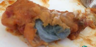 亨德森在采訪中說道:“奧利弗將炸雞從口中拿出時已經(jīng)呈面糊狀,但可以看出其中的藍(lán)色毛巾卷!焙嗟美硎荆@甚至比發(fā)現(xiàn)壞炸雞還嚴(yán)重,如果這是壞炸雞,可能僅是一小部分壞了。然而該藍(lán)色毛巾必定是之前另作他用,譬如供人擦手或擦地板,極有可能沾有漂白劑或消毒劑?系禄{(diào)查了該事件,并向亨德森寫了一封致歉信,解釋道,這藍(lán)色紙巾可能是供其做衛(wèi)生用的毛巾,并聲稱它一定是落入篩下包滿面包的手柄而廚師并未注意到。